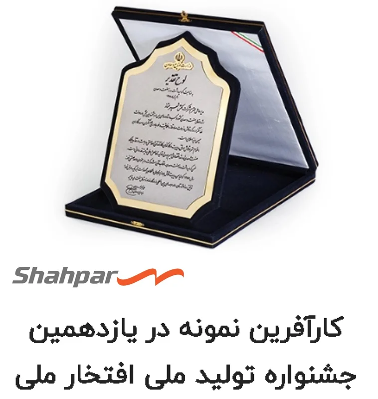💠 این شرکت از طرف وزارت صنعت ، معدن و تجارت، منتخب نمونه تولیدی در کل کشور